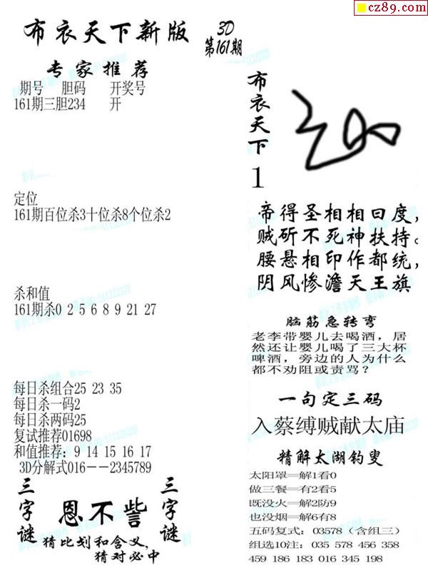 福彩3D2025329期 祁连牧哥百财纳福胆码图谜推荐