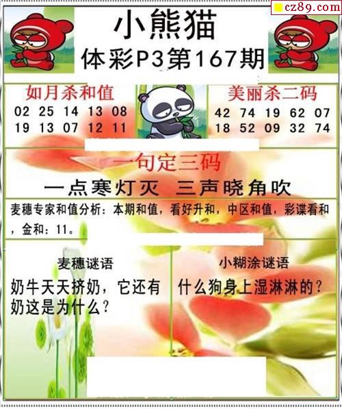 2019167期牛彩网体彩P3画迷图谜汇总分享