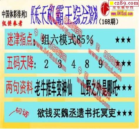 2019168期牛彩网体彩P3画迷图谜汇总分享