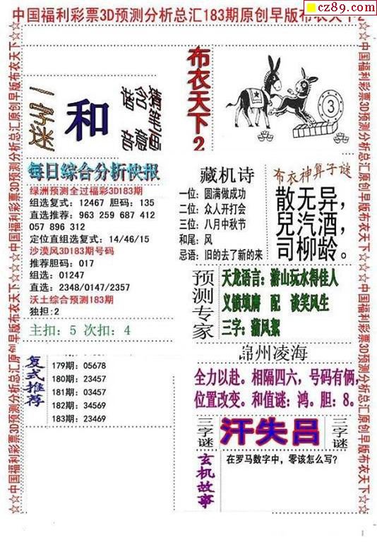 2019183期3d字谜图谜总汇
