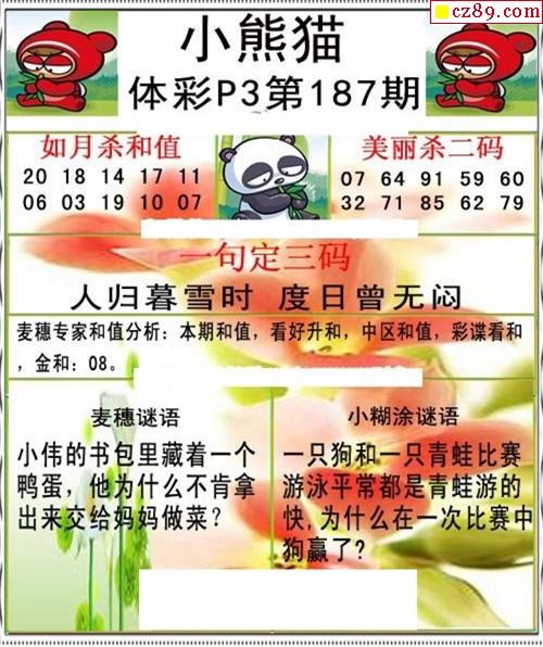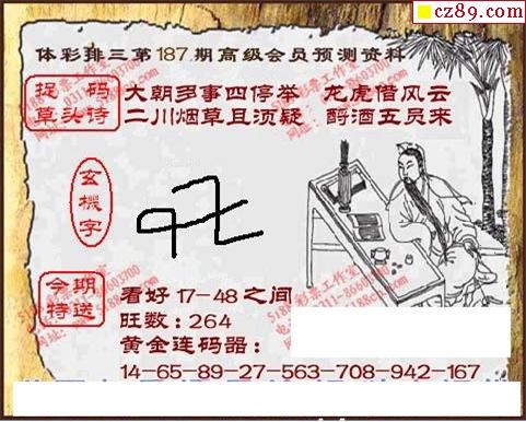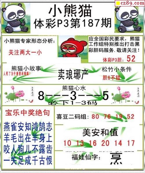 2019187期牛彩网体彩P3画迷图谜汇总分享