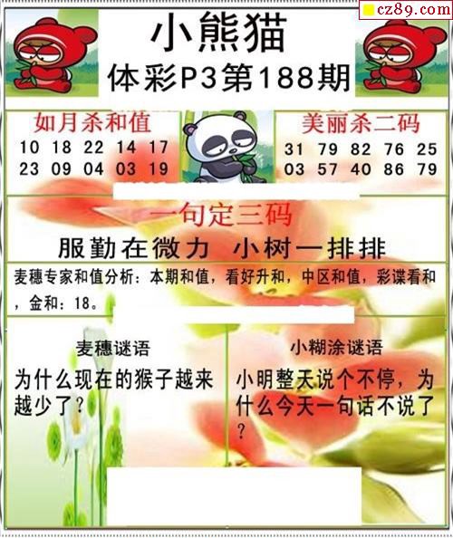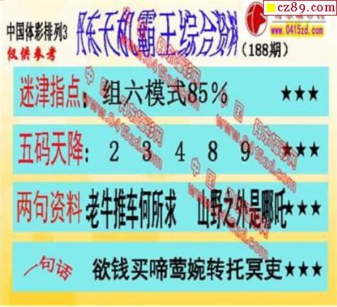 2019188期牛彩网体彩P3画迷图谜汇总分享