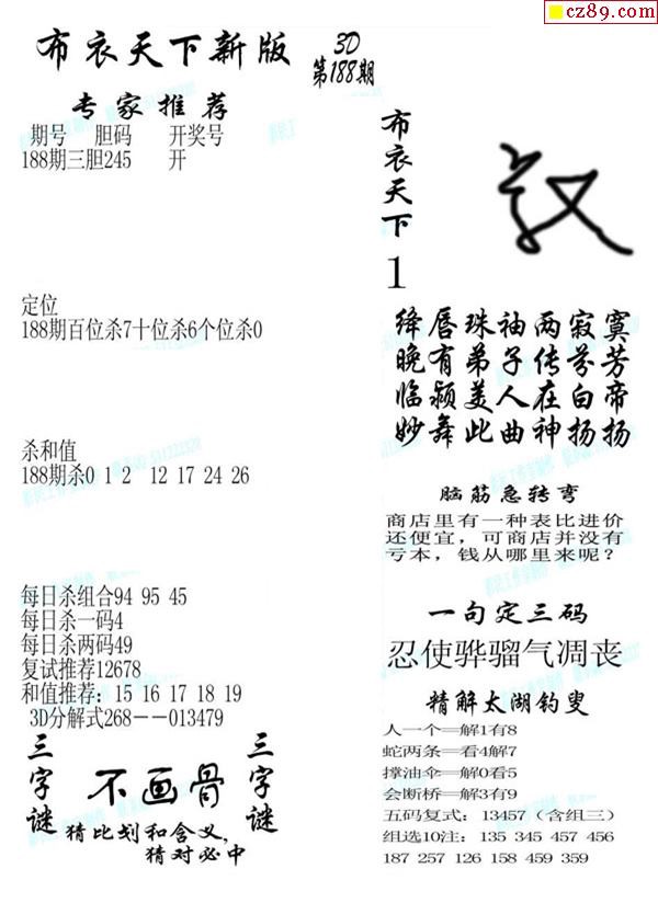 2019188期3d图谜汇总(五)