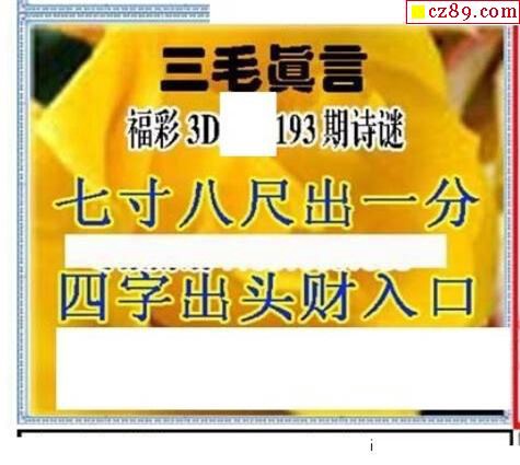 真三毛2019193期3d图谜