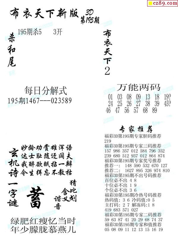 2019195期3d图谜汇总(五)