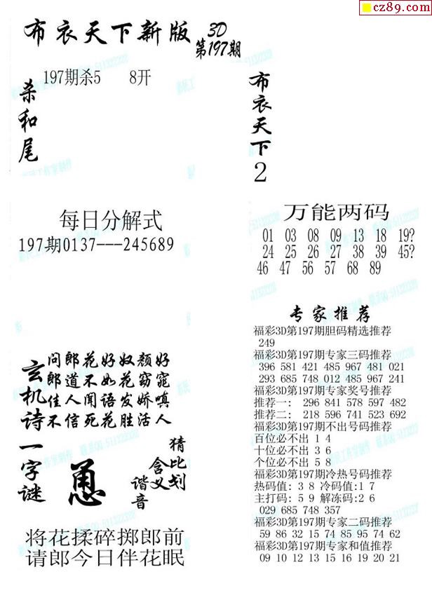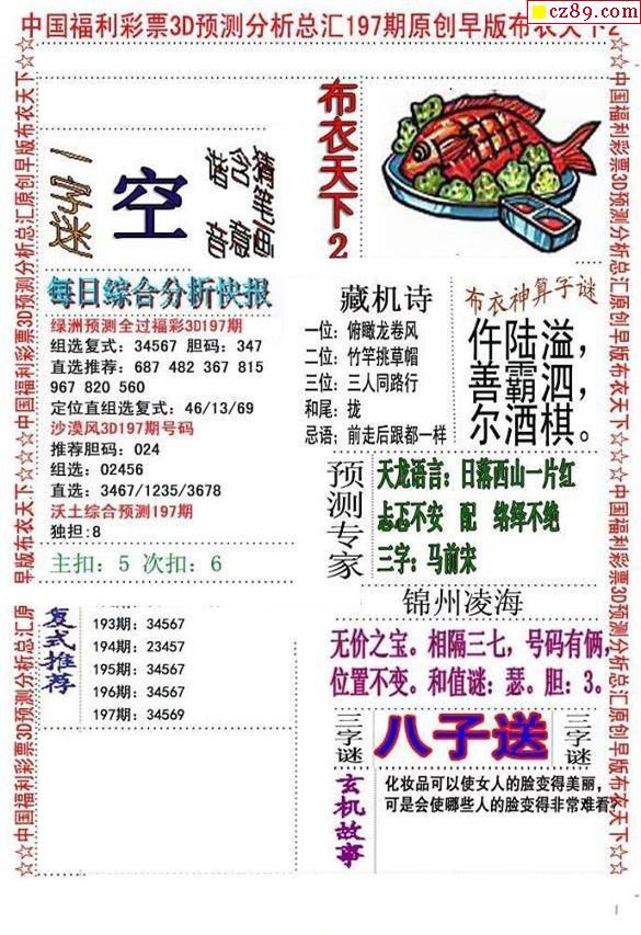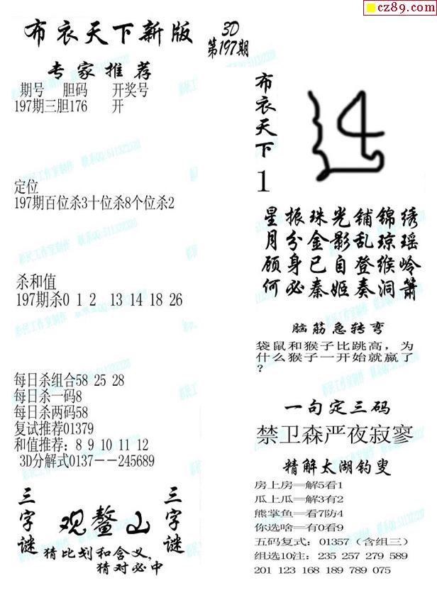 2019197期3d图谜汇总(五)