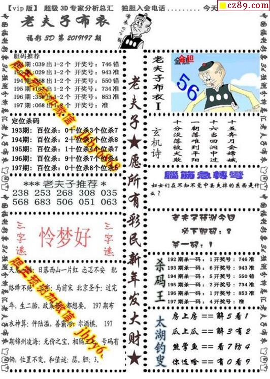 老夫子布衣2025337期3d图谜