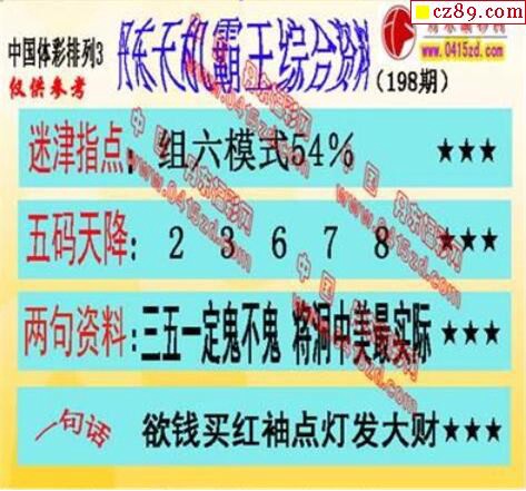 2019198期牛彩网体彩P3画迷图谜汇总分享