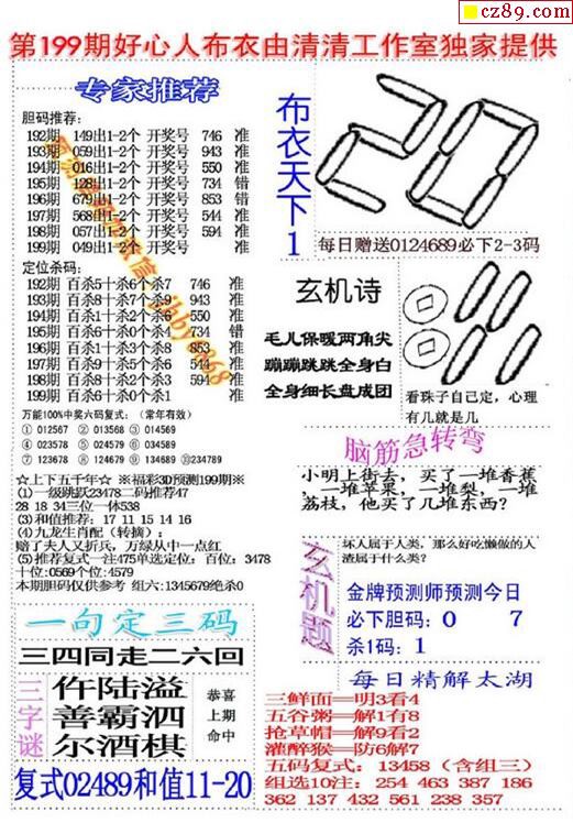 2019199期3D图谜汇总(八)