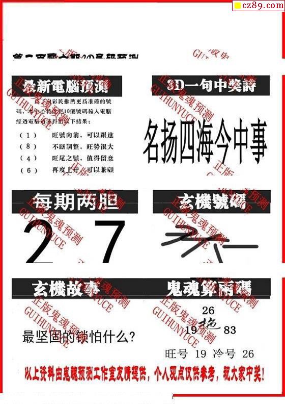 牛彩版3D字谜彩报图25年339期打印版