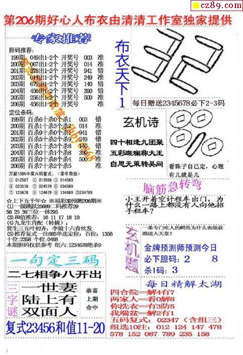 2019206期3D图谜汇总(八)