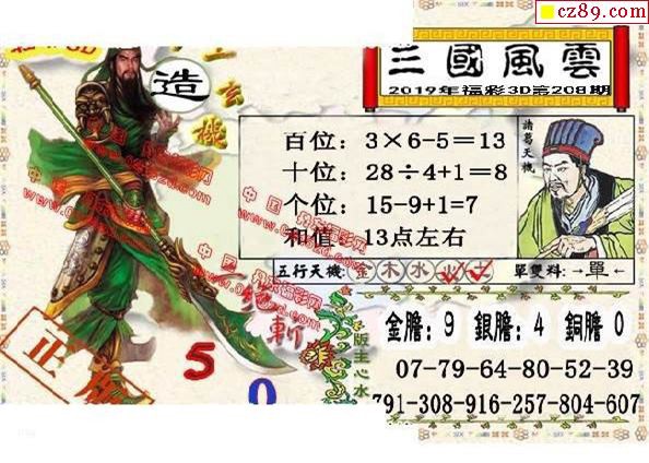 福彩3D2025342期 万家图谜三国胆拖杀图