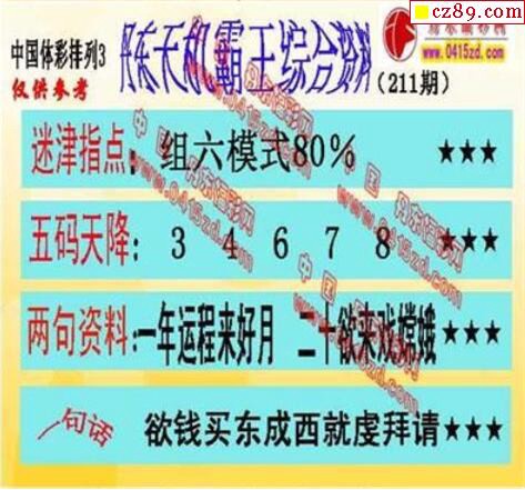 2019年211期牛彩网体彩P3画迷图谜汇总分享