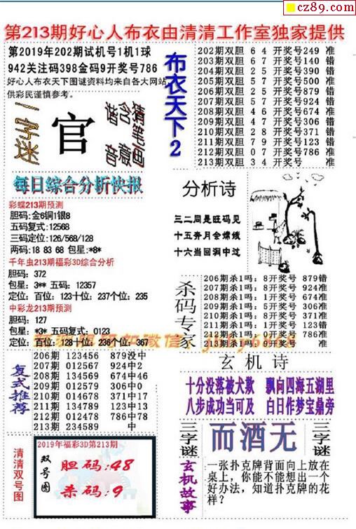 福彩3D2025335期 祁连牧哥百财纳福胆码图谜推荐