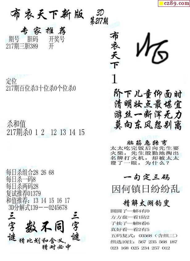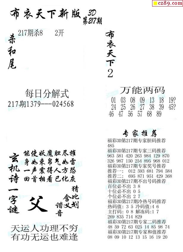 2019217期3d图谜汇总(五)