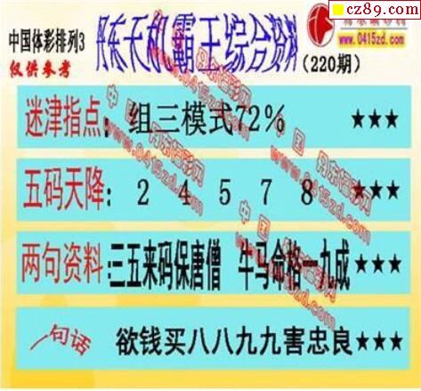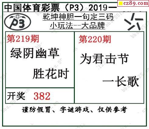 2019年220期牛彩网体彩P3画迷图谜汇总分享
