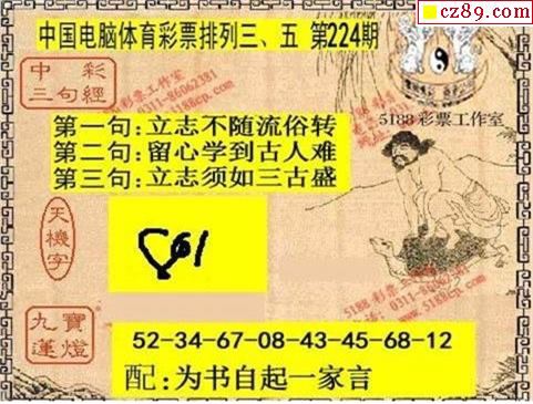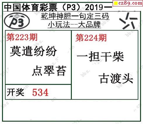 2019年224期牛彩网体彩P3画迷图谜汇总分享