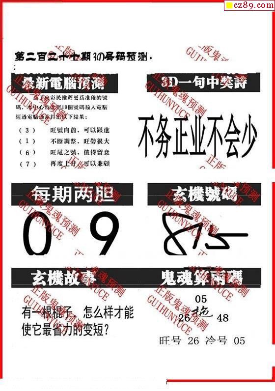 牛彩版3D字谜彩报图25年332期打印版