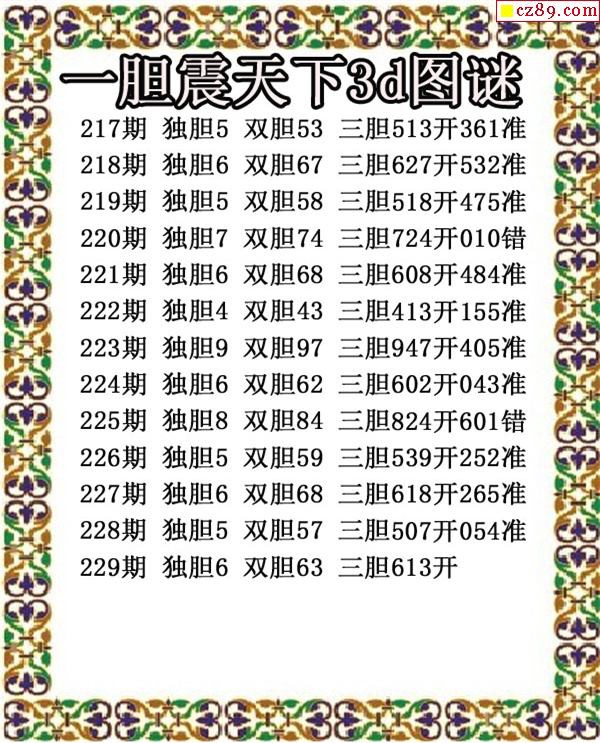 2019229期3D图谜汇总(九)