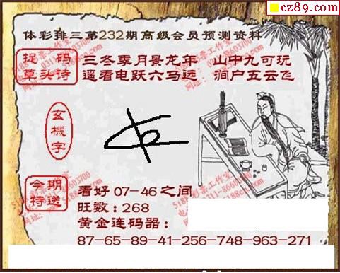 2019年232期牛彩网体彩P3画迷图谜汇总分享