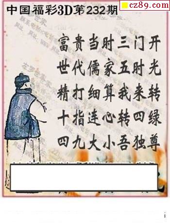 福彩3D2025332期 祁连牧哥百财纳福胆码图谜推荐