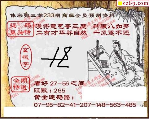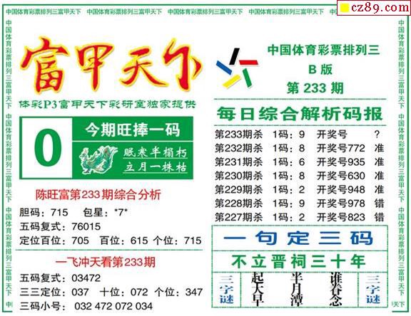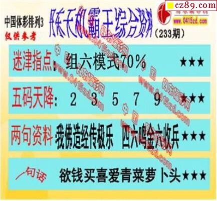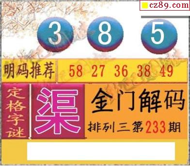 2019年233期牛彩网体彩P3画迷图谜汇总分享