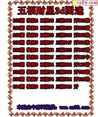 2019234期3D图谜汇总(九)