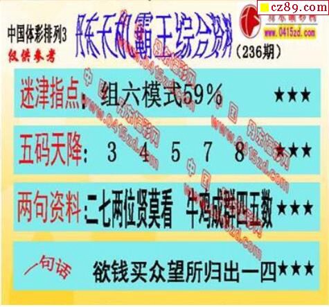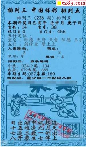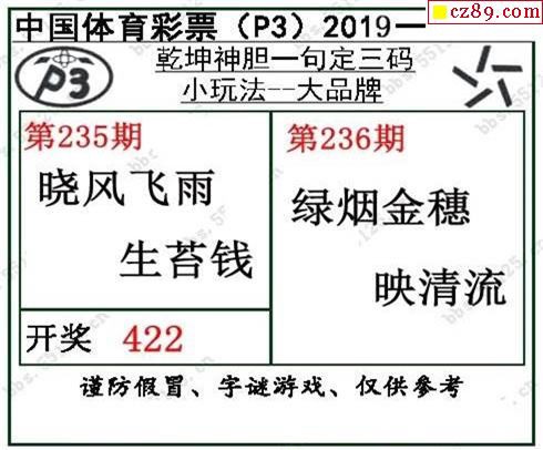 2019年236期牛彩网体彩P3画迷图谜汇总分享