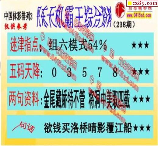 2019年238期牛彩网体彩P3画迷图谜汇总分享