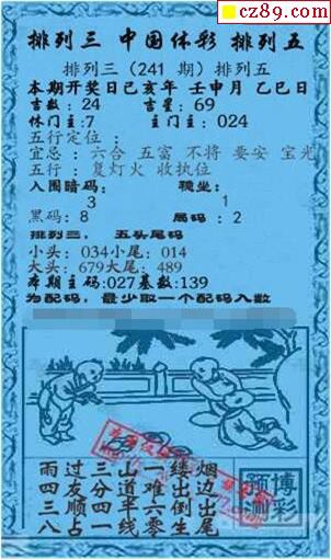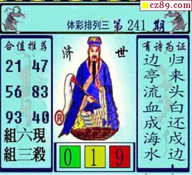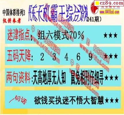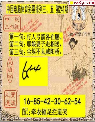 2019年241期牛彩网体彩P3画迷图谜汇总分享