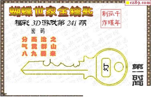 真蝴蝶世家2019241期3d图谜