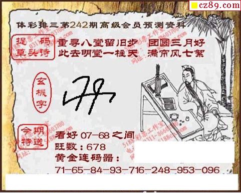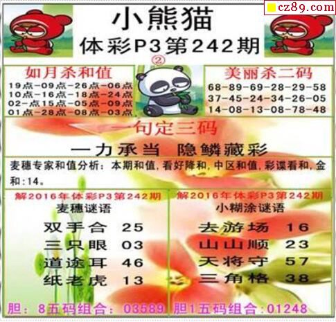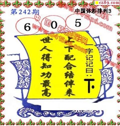 2019年242期牛彩网体彩P3画迷图谜汇总分享