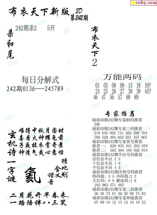 2019242期3d图谜汇总(五)