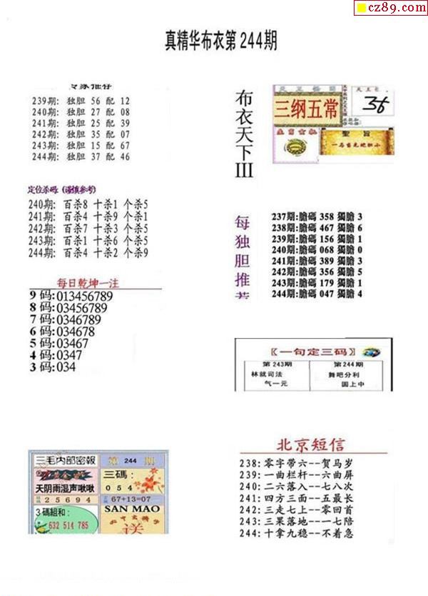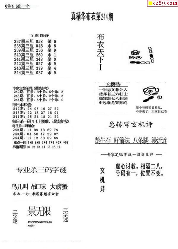 2019244期3D图谜汇总(七)