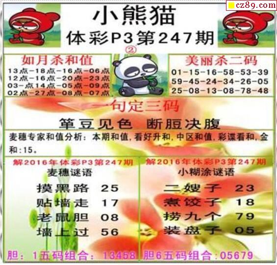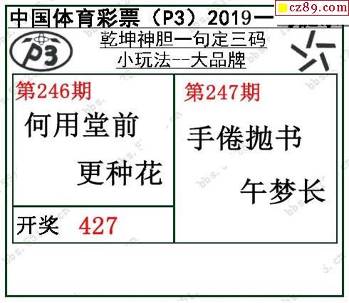 2019年247期牛彩网体彩P3画迷图谜汇总分享