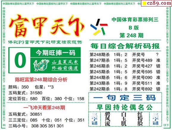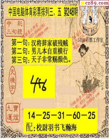 2019年248期牛彩网体彩P3画迷图谜汇总分享