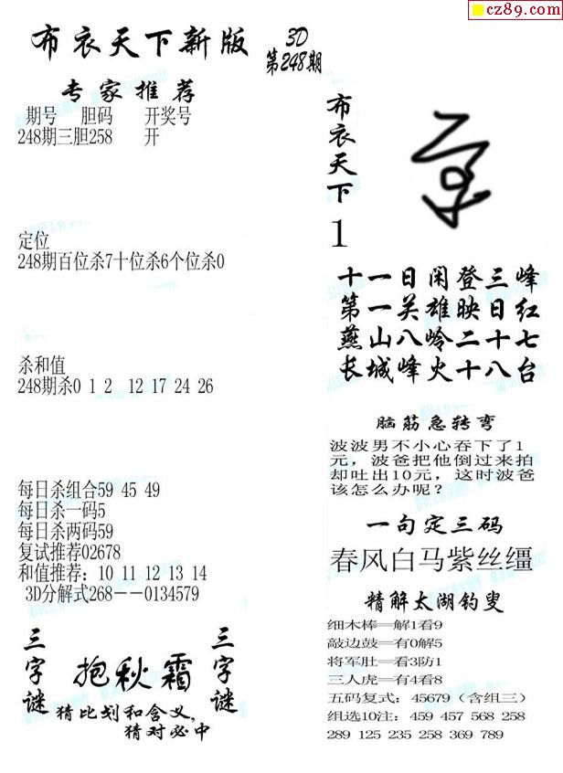 2019248期3d图谜汇总(五)