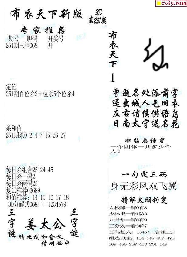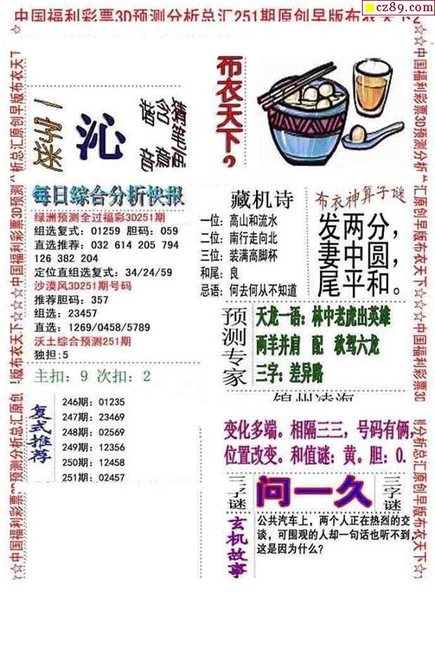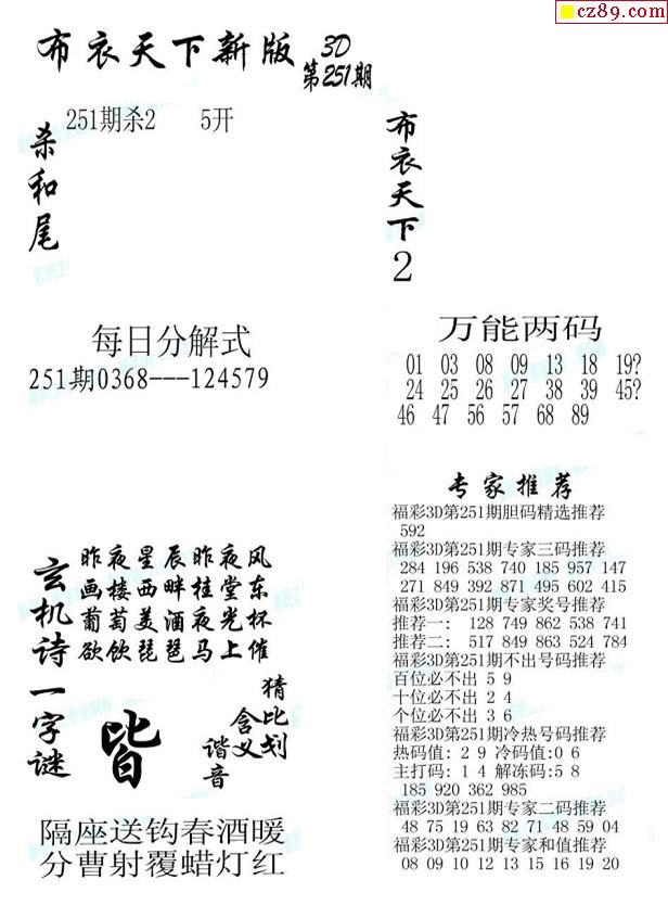 2019251期3d图谜汇总(五)