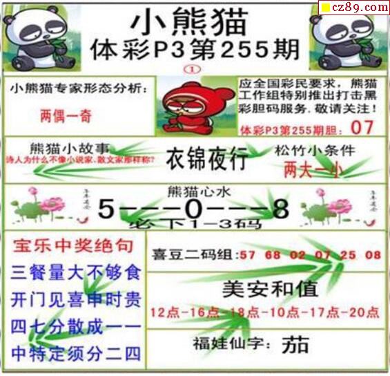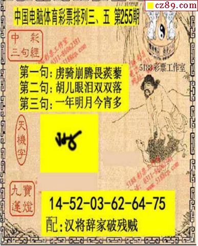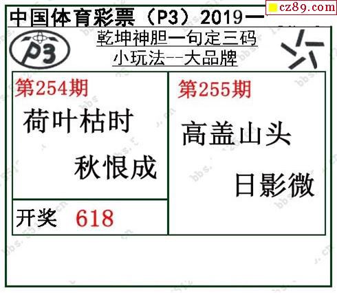 2019年255期牛彩网体彩P3画迷图谜汇总分享