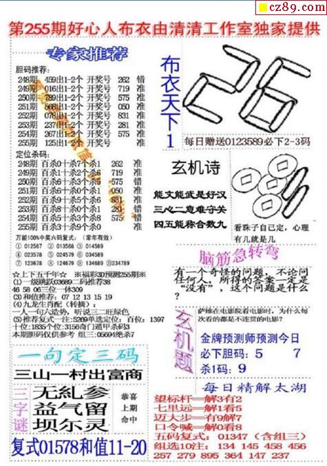 2019255期3D图谜汇总(八)