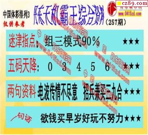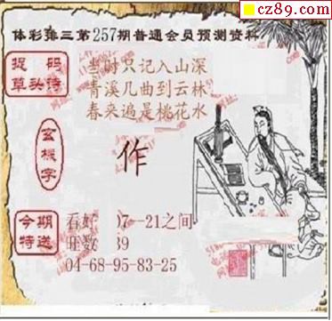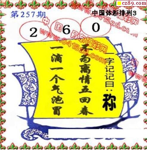 2019年257期牛彩网体彩P3画迷图谜汇总分享