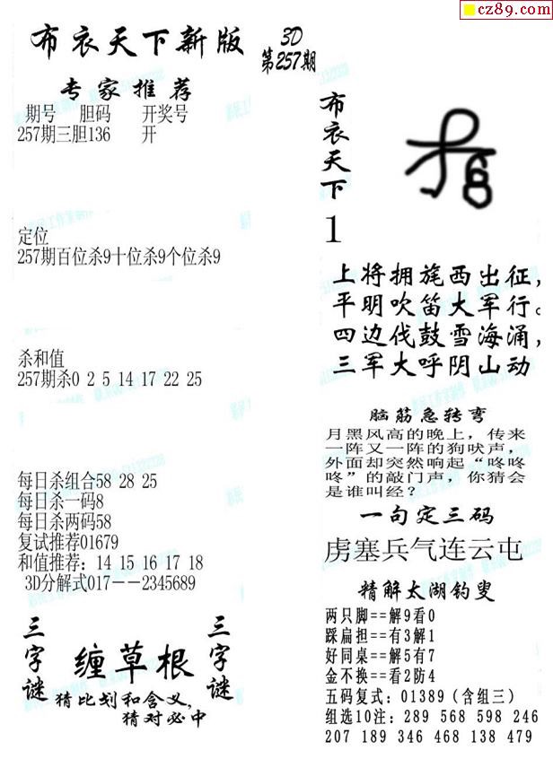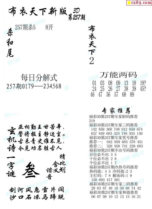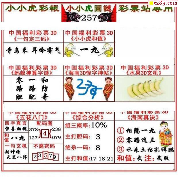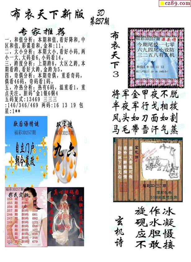 2019257期3d图谜汇总(五)
