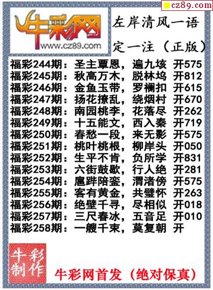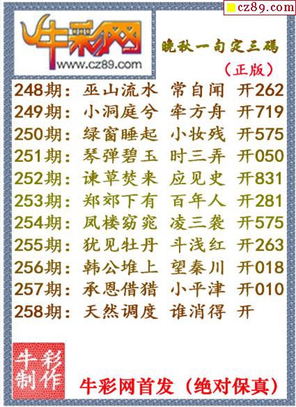 牛彩版3D字谜彩报图25年340期打印版