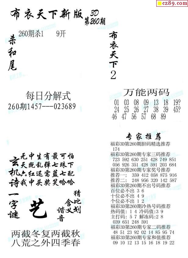 2019260期3d图谜汇总(五)