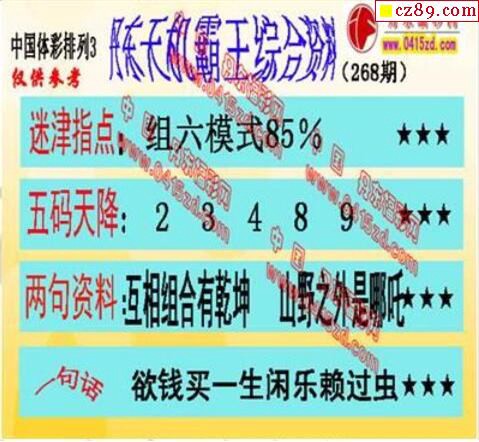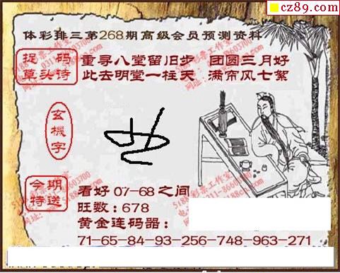 2019年268期牛彩网体彩P3画迷图谜汇总分享