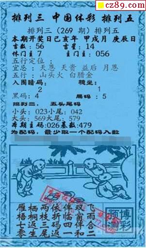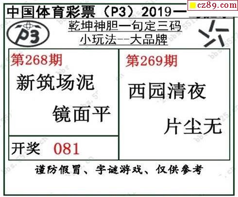 2019年269期牛彩网体彩P3画迷图谜汇总分享