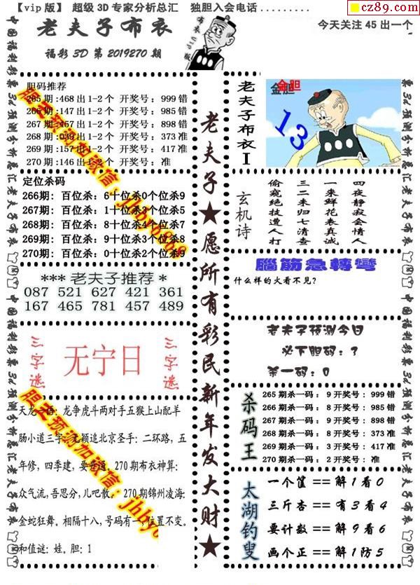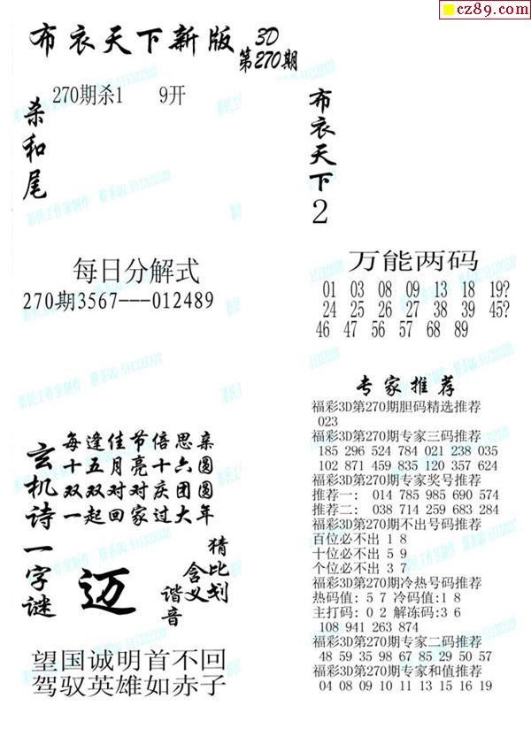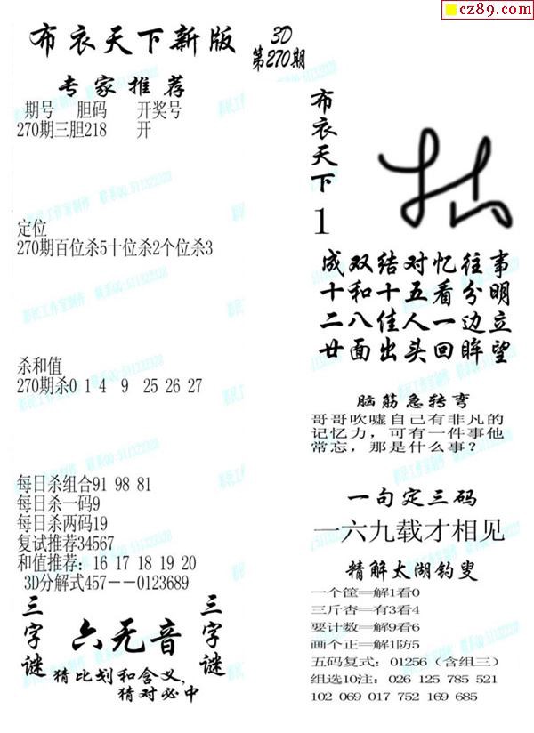 2019270期3d图谜汇总(五)
