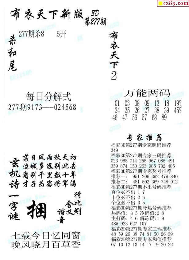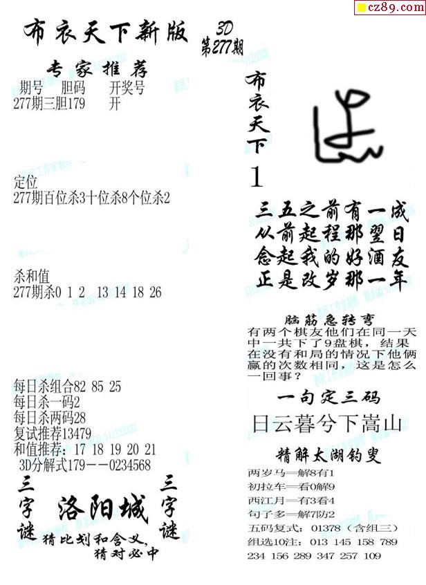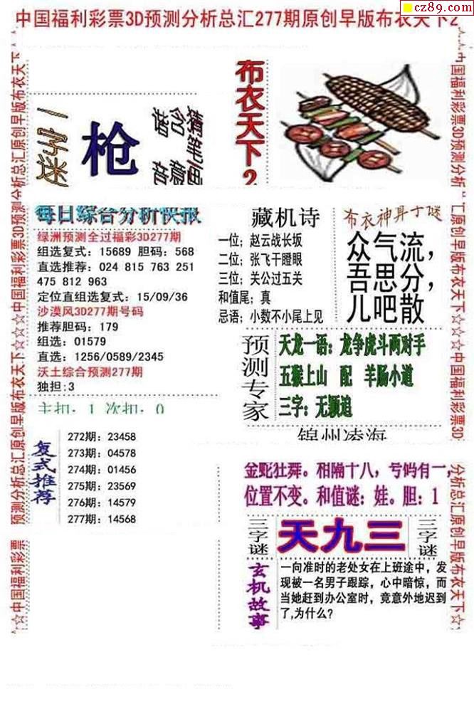 2019277期3d图谜汇总(五)