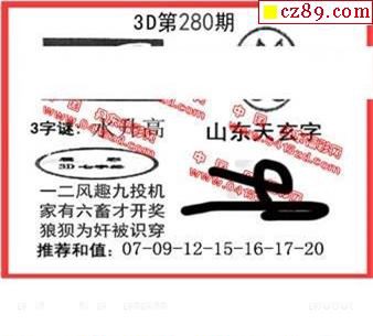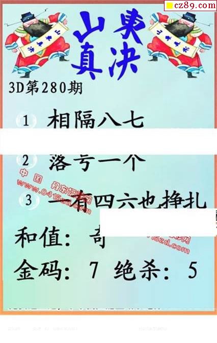 丹东全图2019280期3d图谜