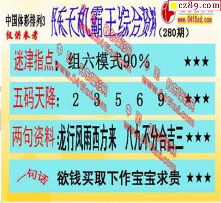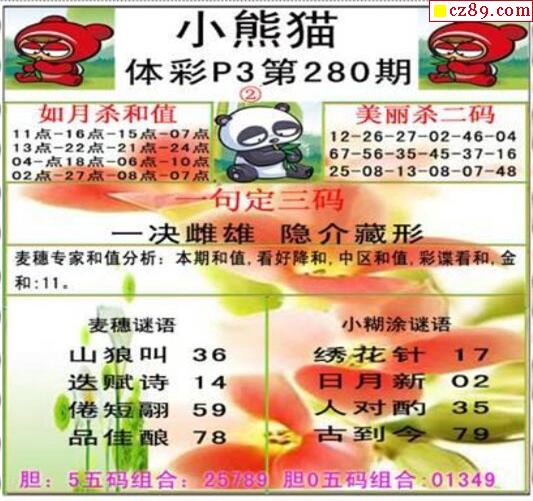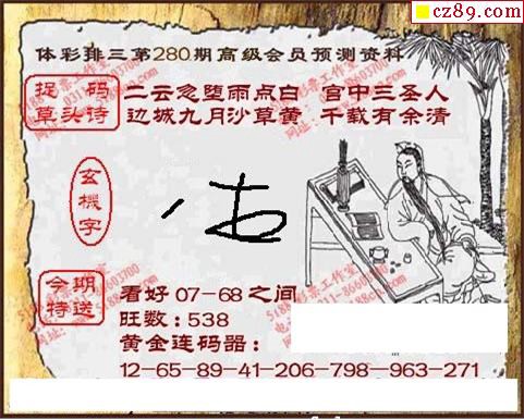 2019年280期牛彩网体彩P3画迷图谜汇总分享